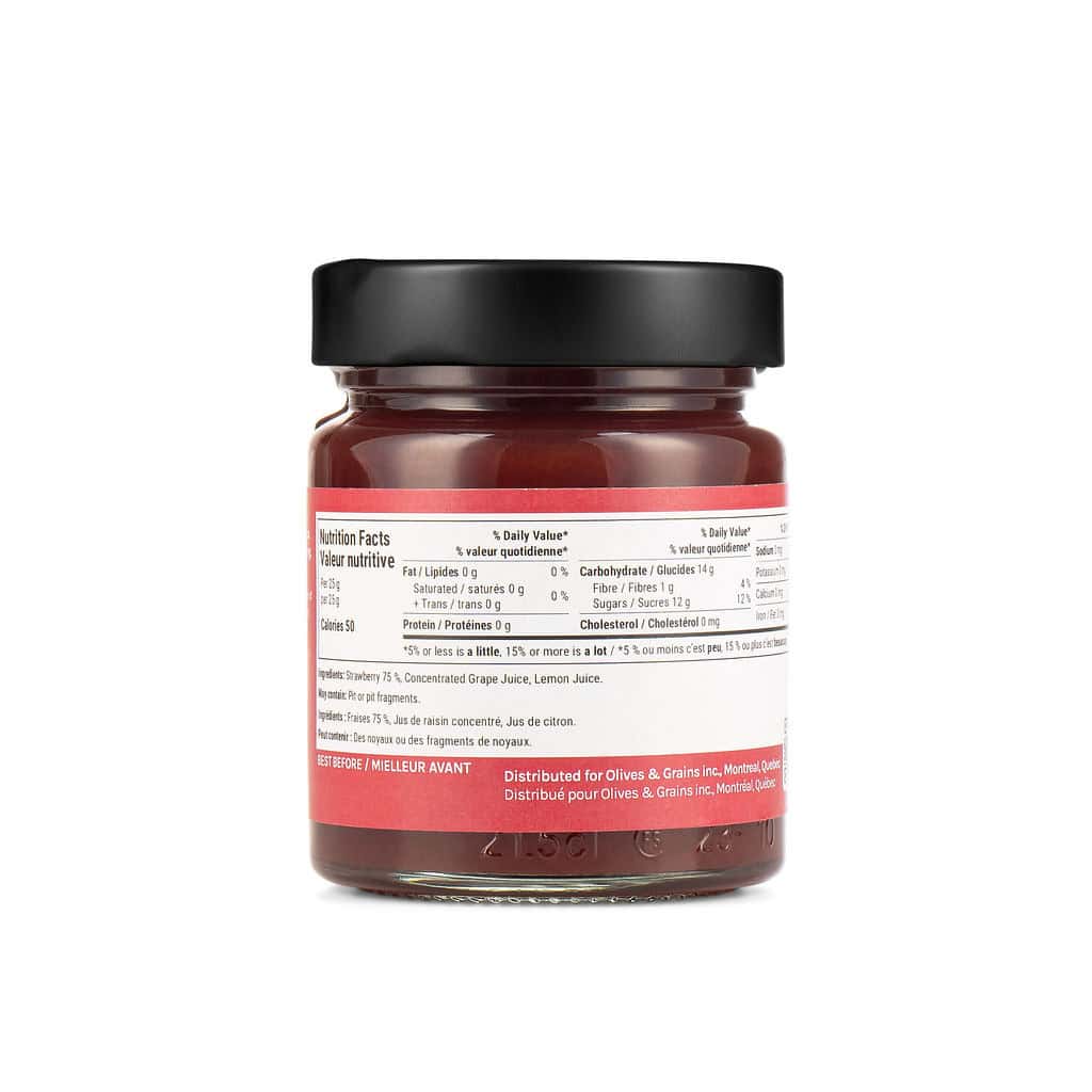 Ingrédients : Fraises (75 %), jus de raisin concentré et jus de citron
